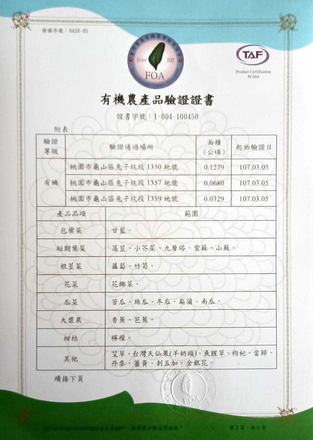 有機農產品驗證書